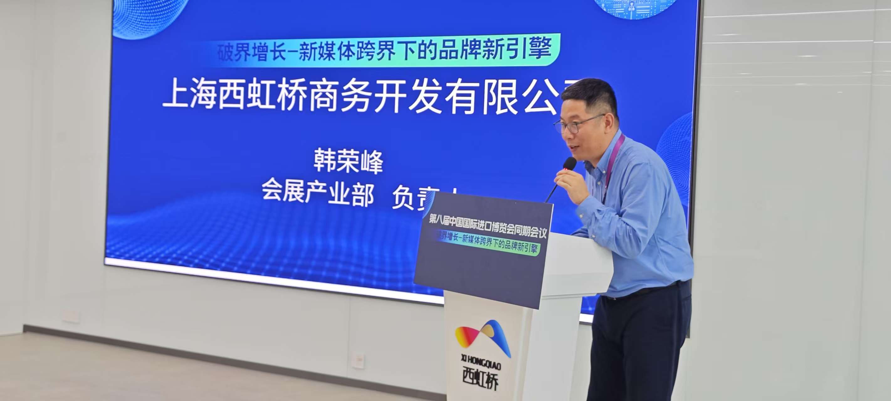 上海西虹桥商务开发有限公司会展产业部负责人韩荣峰上台致辞,并向参会嘉宾分别从区位、特色产业和文化方面做了详细介绍。青浦西虹桥商务区作为虹桥国际中央商务区的重要组成部分,是中国国际进口博览会的永久举办地。作为上海重大战略任务最聚焦的区域之一,这里承载中国国际进口博览会、虹桥国际开放枢纽、长三角一体化三大国家战略,将全力建设成为一流国际化中央商务区。作为虹桥国际开放枢纽的核心,西虹桥商务区紧邻虹桥综合交通枢纽,坐拥航空、高铁、地铁、高速公路的轨陆空一体化网络,是连接长三角、辐射全国的桥头堡。依托国家级战略平台,成功集聚了总部经济、会展经济、现代服务业等高能级产业,从交通枢纽升级为功能枢纽,成为推动长三角一体化和对外开放的关键引擎。西虹桥商务区总面积约41.27平方公里,拥有国家会展中心等数百万方高品质商务楼宇,国家级旅游休闲街区﹣﹣蟠龙天地,同时拥有优质的医疗资源、教育资源以及齐全的配套设施,实现了真正的产城融合,打造了宜居宜产的理想生活圈。西虹桥商务区聚焦高溢出的会展经济、高流量的贸易经济、高能级的新兴经济和高端化的服务经济,着力培育会展广告、企业出海服务、时尚消费和科创等细分赛道。依托“青浦西虹桥环国家会展中心都市旅游区”的品牌号召力,西虹桥商务区深度承接进博会溢出效应,以蟠龙天地、虹馆演艺中心、绿地贸易港、首位奥特莱斯、上海影视文化产业集聚区等特色项目为载体,持续激发文旅消费新活力,着力擦亮区域文化新名片。韩总向与会嘉宾表示欢迎大家在西虹桥投资置业,并开展多领域方面的合作。